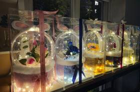 ของขวัญแทนใจ ให้ทุกโมเมนต์พิเศษน่าประทับใจยิ่งขึ้น บอลลูนดอกไม้กำมะหยี่สุดหรูในกล่องใส พร้อมไฟประดับระยิบระยับ