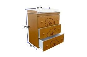 Raspberry Kid ตู้ลิ้นชักสีไม้โอ๊ค ผลิตจากไม้ยางพารา ด้านบนมีเบาะเปลี่ยนผ้าอ้อม